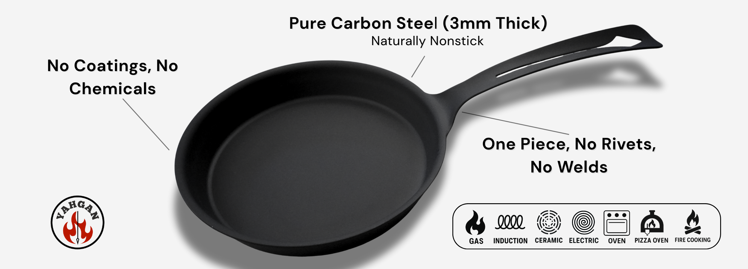 Yahgan pans have no synthetic coatings, no mystery chemicals. Just pure carbon steel goodness. Naturally nonstick. Your eggs, your health, and the planet will thank you.
