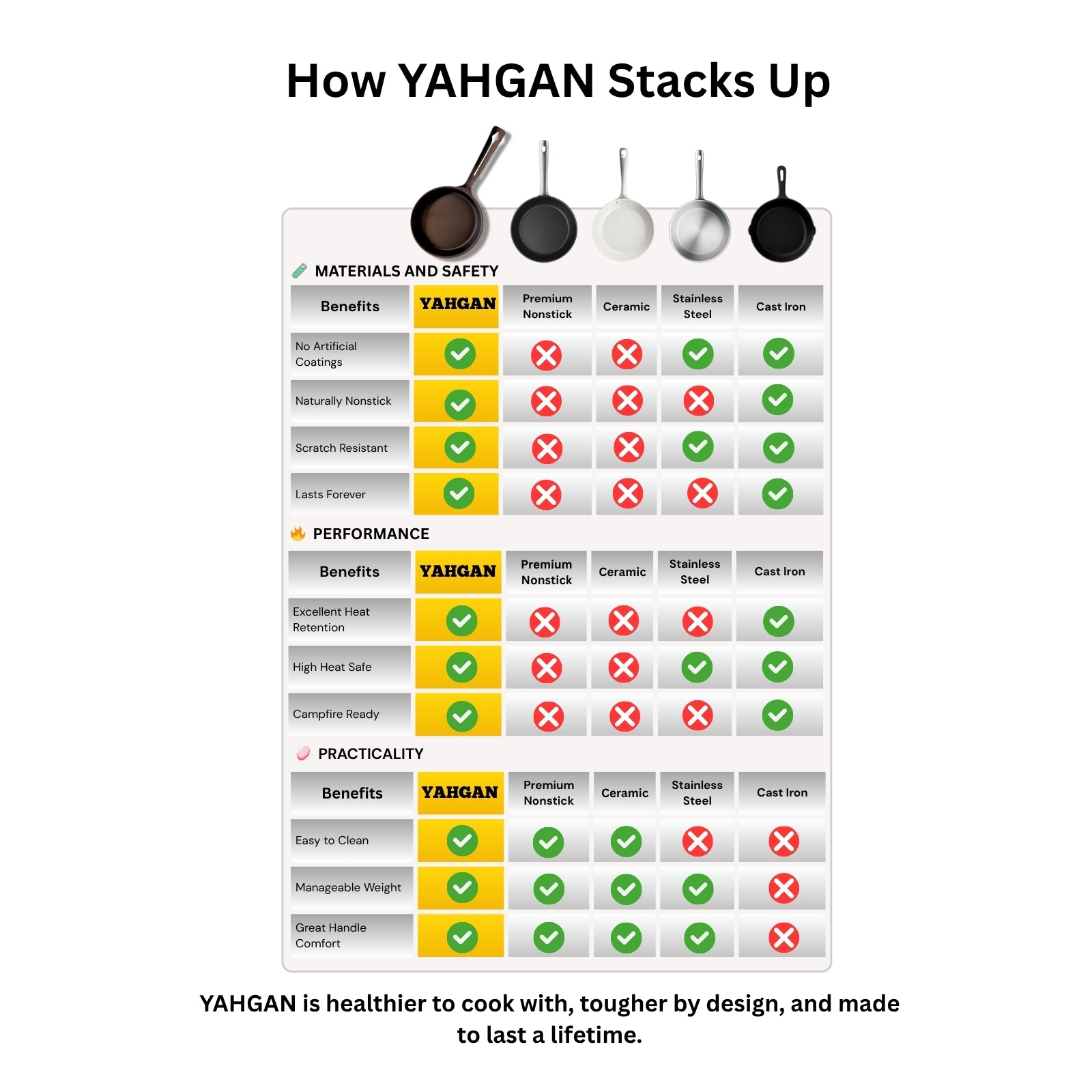 YAHGAN exists to help more families make the switch from synthetic coatings to healthy cookware that lasts generations.